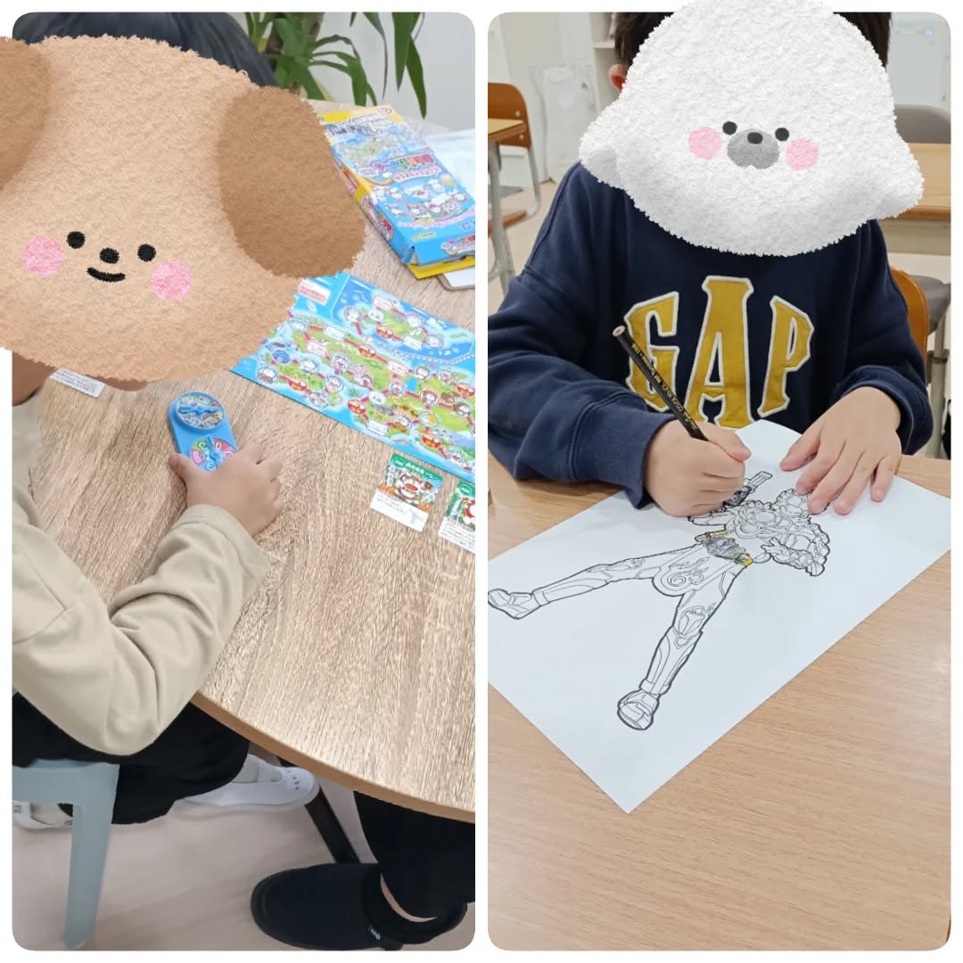 学習後は、すごろくを楽しむ子・ぬりえに集中する子など、それぞれが好きな活動でリラックス🎲🖍️