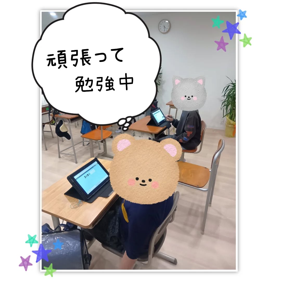 タブレット学習やプリントなどで、お子さん一人一人に合わせた教材を用意し、算数や国語に取り組んでいます。